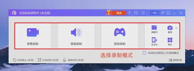 电脑如何录制屏幕?打开软件后,在首界面按录制内容与范围选择对应模式,本次将以基础的“屏幕录制”模式为例展开说明;